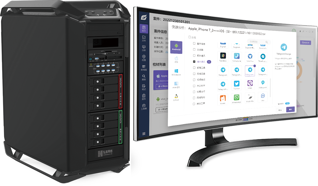 一款介质专用取证工作站,采用高性能硬件及一体化多功能的设计,具备硬盘复制机、只读锁及分析软件同时工作的处理能力,特别针对目前案件中碰到的硬盘容量大、数量多的情况进行快速分析与调查。该设备集介质固定、介质取证分析、系统仿真、报告生成等多种专用功能于一体,采用多种只读接口,可以有效保证各类存储介质内的数据在取证分析过程中不被修改,并支持多人合作和远程的数据分析交互模式。